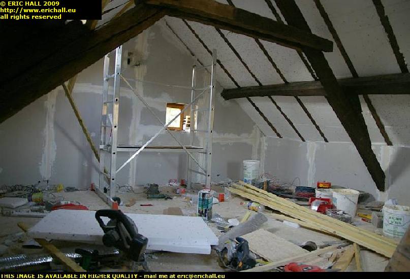 There's a much better shot of the eastern end of the room here and you can see the timber framework that will enclose the head of the stairs and the little cupboard that I'm going to build.