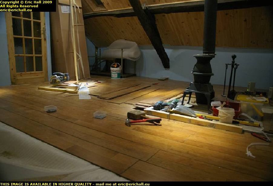 There is also some flooring down. It's 18mm OSB which was the thickest in Brico Depot but they seem to think that it will be perfect for the job. The OSB is lighter than chipboard and comes in smaller sheets so it's much easier to bring them up the ladder into the attic and much easier to handle.