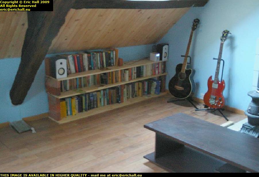 Also in shot is the green curtain that keeps out the draughts. I have two of those and they both came from the Dunns menswear shop in Crewe in the late 1970s. My brother worked there when they were having a major refit and the changing rooms received a makeover. These old curtains that had been there longer than anyone could remember were consigned to the dustbin and I liberated them. They are good-quality heavy stuff and ideal for here. Not very colour-co-ordinated, but I have some nice dark blue curtains with lining back in Brussels.