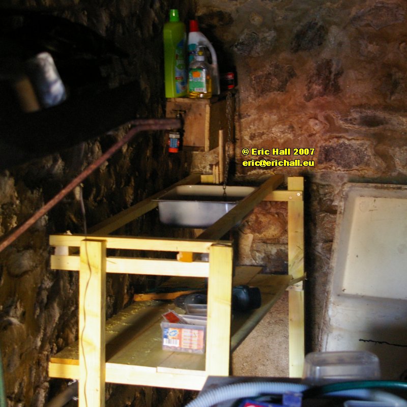 I salvaged a sink from a scrap caravan a few years ago, so I built myself a quick sink unit to fit it. This looks much more professional now - especially once I put a worktop on it. Well - a sort-of worktop. In fact it was the cut-out from when I put the sink and draining board unit into my apartment from Brussels.