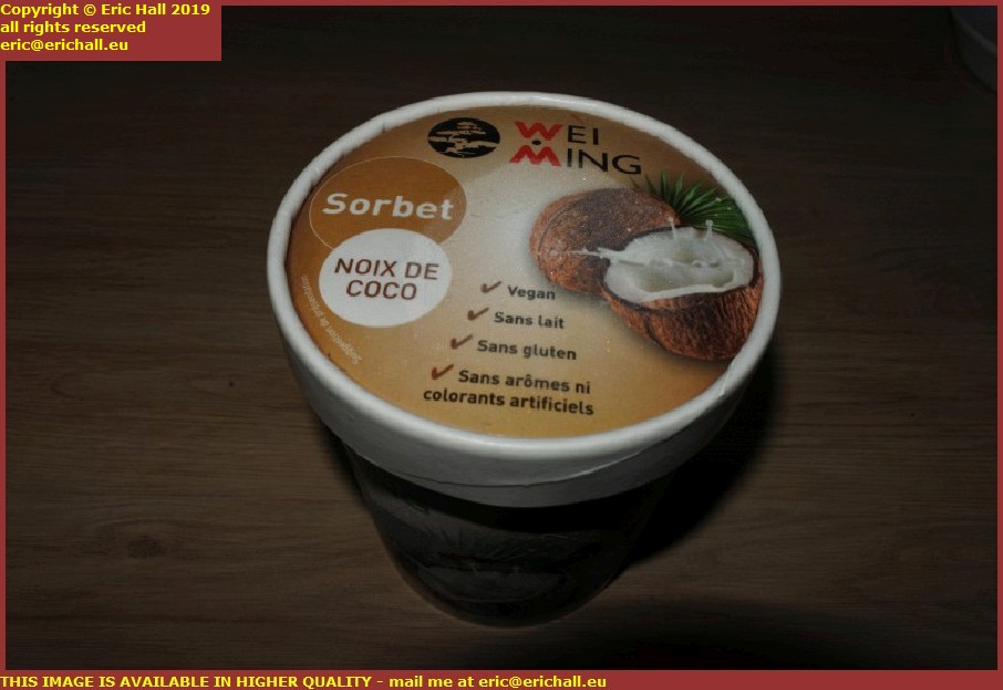 vegan coconut sorbet noz granville manche normandy franceLeclerc had nothing exciting, and neither did NOZ, except for some vegan coconut sorbet – half a litre for €0:99!