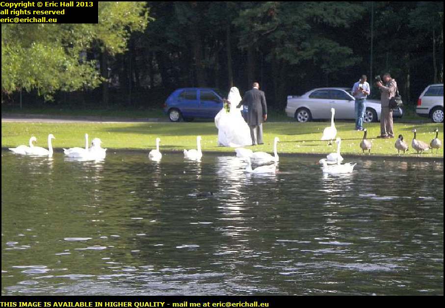woman feeding ducks and swans etangs mellaerts brussels begium may 2015For lunch I stopped off at the Etangs Mellaerts to eat my honey and nut bread, and to watch an old woman feeding the ducks and swans.