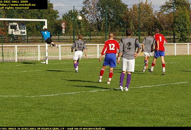 … and I had a nice drive down to Cebazat, between Riom and Clermont Ferrand, for the footy. Finding the town was one thing – finding the ground was something else entirely. I ended up at what can only be described as a stadium watching a wimmin’s footy match while the locals asked around as to where the men might be playing. In the end I was directed to a public park on the edge of the town where there wasn’t even a pie hut Shock! Horror!