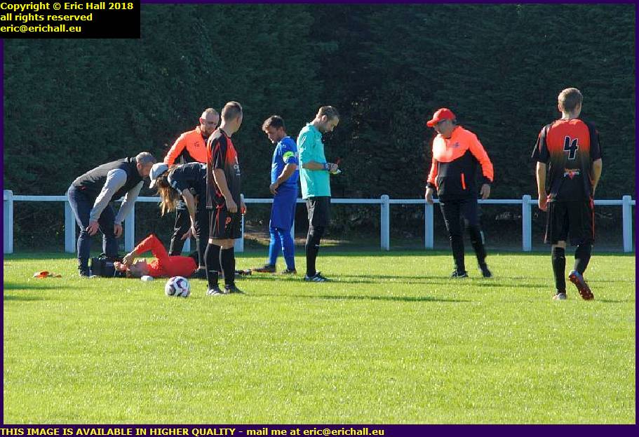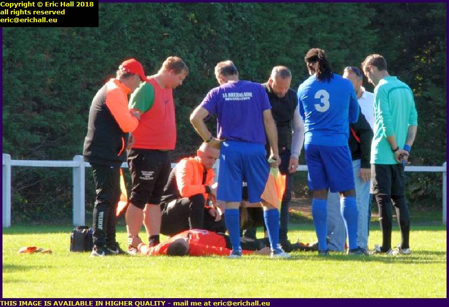 Treating an injured goalkeeper La Brehalaise v FC Sienne