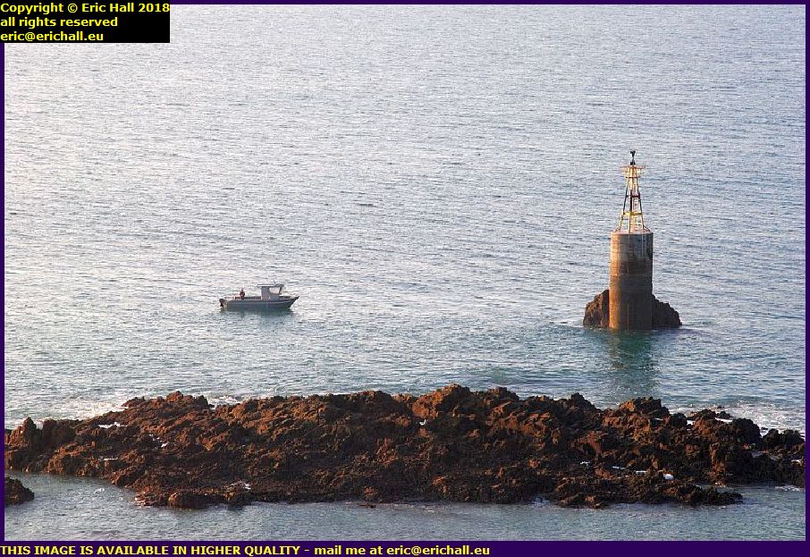Fishermen in a boat near the old diving platform at the Pointe du Roc