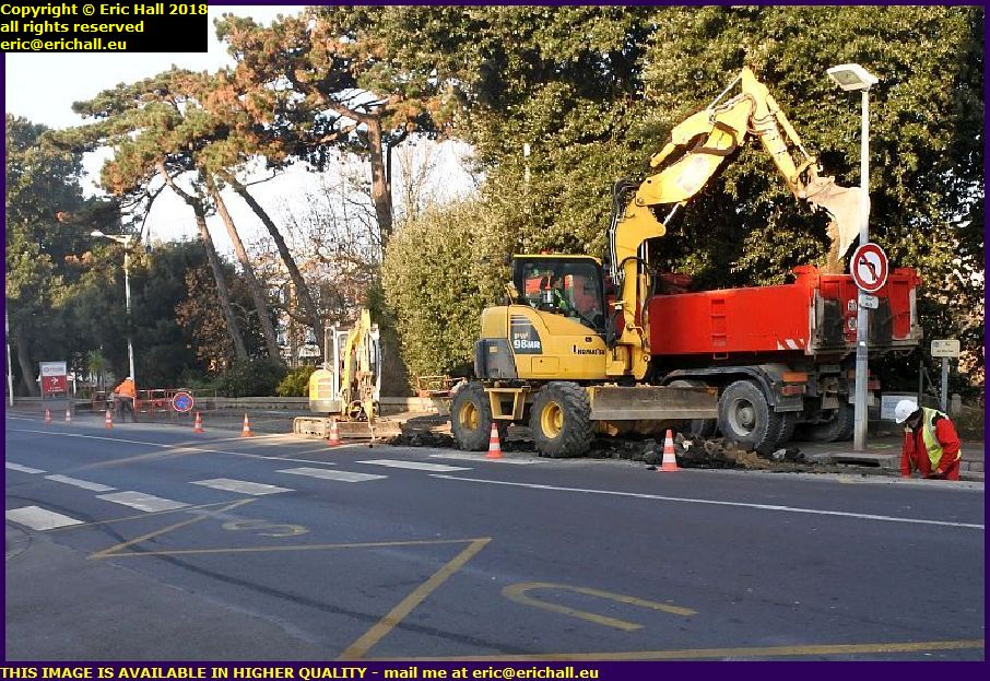 Here in the Avenue du Maréchal Leclerc just a little higher up the hill from the railway station they are now digging out a channel on the pavement so that they can pass the cable higher up the hill presumably in the direction of the telephone exchange