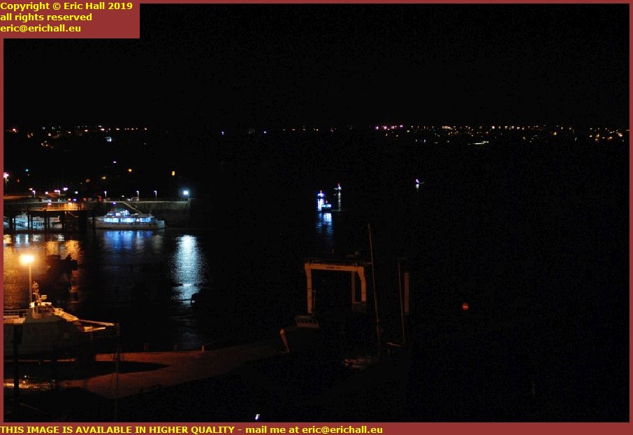 Nothing of any commercial nature going on right now except for the usual trawlers, but Charles-Marie is over there – the blue-and white yacht over there against the far wall.