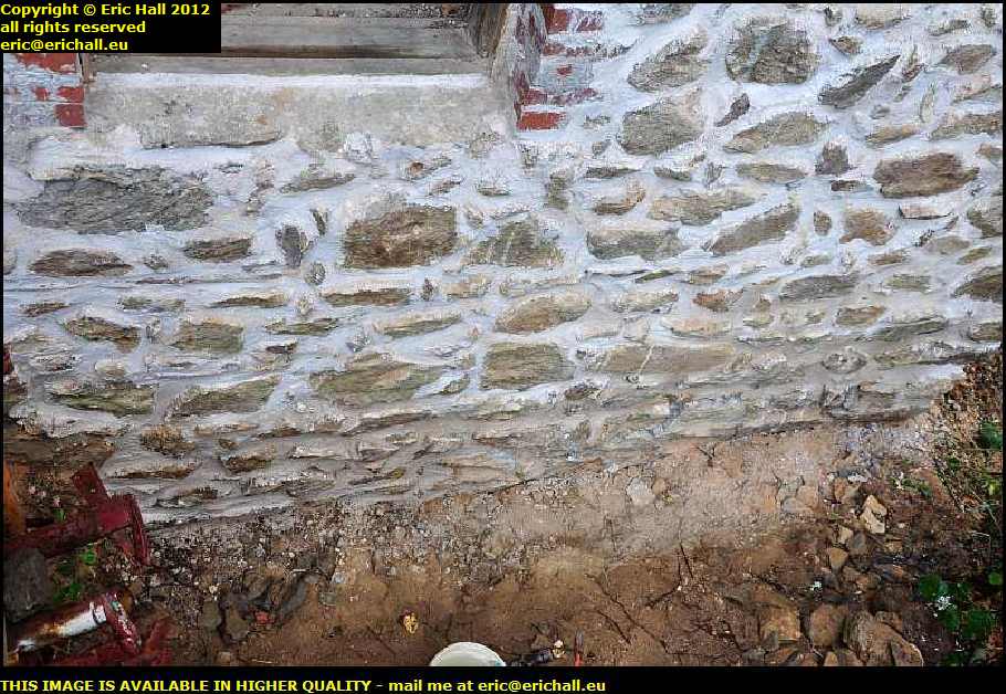 I’ve finished off the one half of the long wall of the lean-to, right down to, and in fact below the level of the ground as I’ve dug a trench about 6 inches deep and sealed the wall down there too.