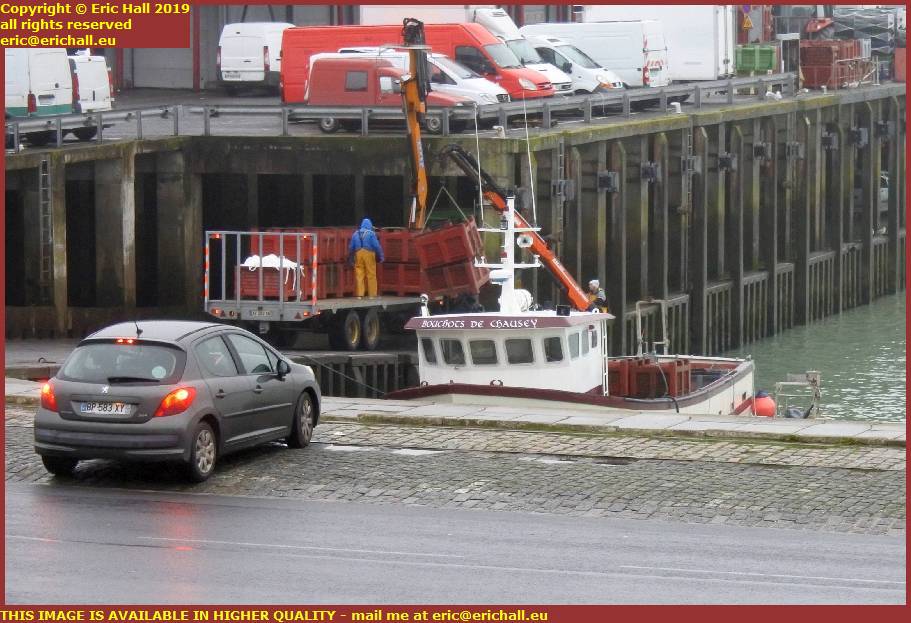 And down at the foot of the Escalier des Noires Vaches I stopped for a while to observe the fishing boat Les Bouchots de Chausey moored up by the fish processing plant with a few guys doing some loading work around it.