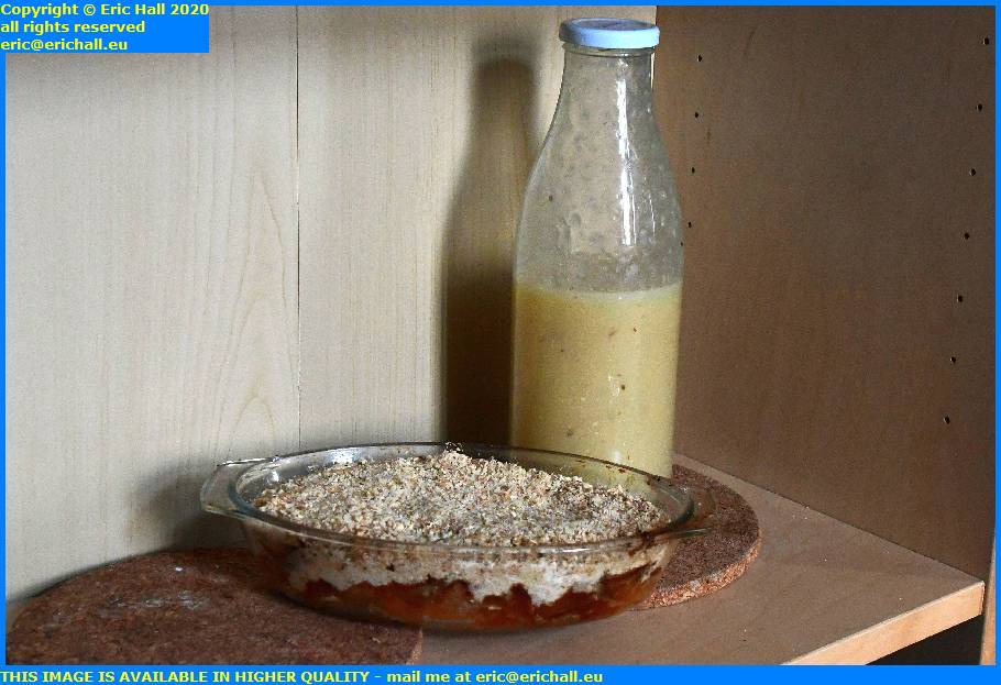 The apple crumble is down to the last helping and there was some crumble mix left over, so I used it and the remaining cooking apples to make a small crumble.