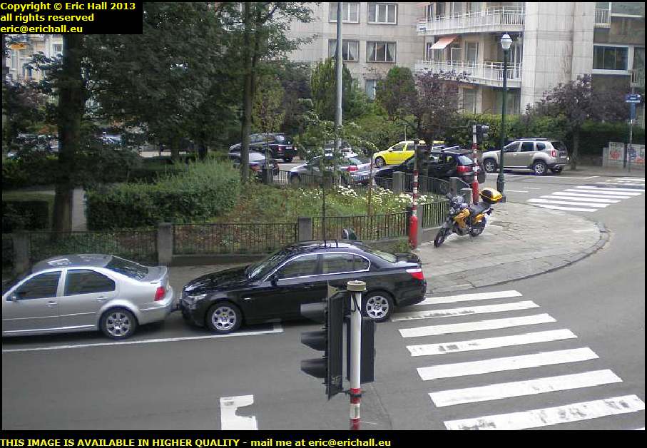 So here’s a photo of two different vehicles well-advanced in front of the rear limit for parking, and this time a car parked here in the foreground and overhanging the pedestrian crossing.
