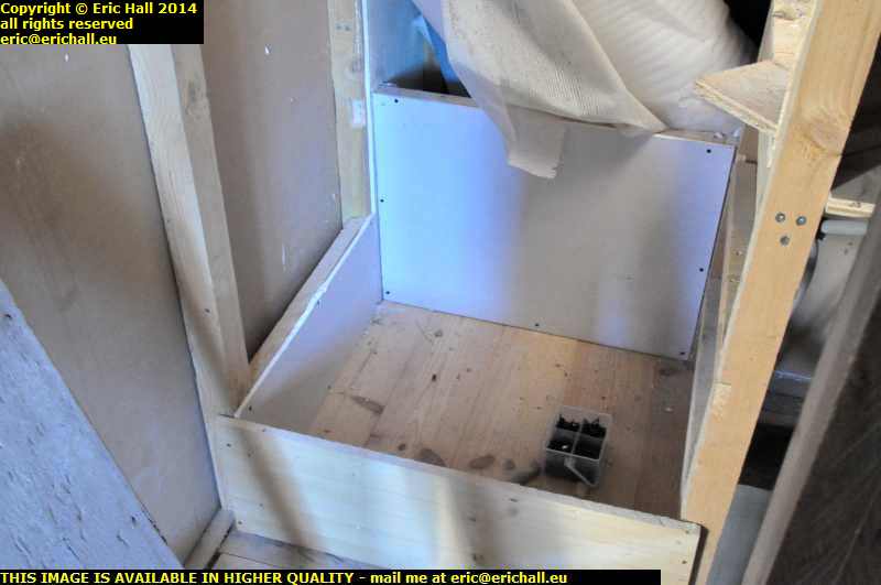 Tomorrow, I’ll fill the screwheads in the plasterboards that I fitted today, sand them off and then fit the treads for the stairs. Once they are done, I can varnish the flooring in there and then I’ll have a couple of shelves for storage.