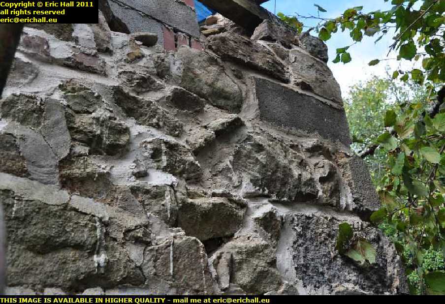 >This afternoon I went and attacked the wall. The breeze block that I had put in the other day had set nicely so I scavenged around for some decent square-faced stones from where the wall collapsed in 2002. It took ages but I found some really good ones and I slowly started to rebuild the corner. It’s a case of cementing two large stones carefully in place at the corner, and