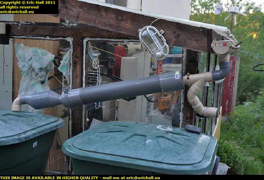 The issue was that with having the sump where it was before, there wasn’t enough head to drain the water through the sand and puzzolane filter (the left-hand container) and so it was backing up into the settling tank (the long grey pipe). And so what I have done is to put a right-angle in where the sump was, and to move the sump round into the horizontal plane. That gives me much more head as you can see and the slope is much more respectable. The sump in its new position is much more twisted and I don’t think that it will work as well as the vertical sump and hotizontal take-off of the previous version, but the height of the head is everything and so it will have to do. It was either that or cut down the legs of the stand for the water butts, but if I were to do that I couldn’t fit a bucket underneath.