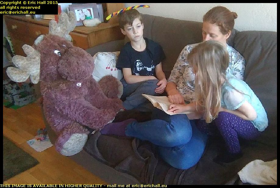 Everyone is clearly enjoying himself here as you can see. Even Kate, who has drawn the short straw this morning as chief reader.