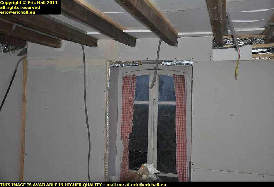 What the plan is for tomorrow is to make a start on the ceiling – cutting some tongue-and-grooving to fit between the beams. I won’t be able to do much as I don’t have any 20mm insulation sheets. I forgot to get some last weekend at Brico Depot, but whatever I do will at least give you an idea of how it’s all going to work. As I say, slow progress but it’s progress all the same and It’s looking a little more optimistic here. I might even have a bedroom for the summer!
