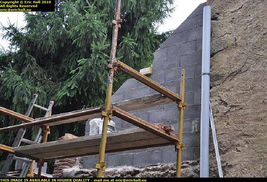 Terry was doing the bricklaying, Simon was cutting and I was labouring. And it’s hard work mixing load after load after load of lime cement and then in my spare time bagging sand (we had to go down to the quarry with the Sankey trailer to buy another load).