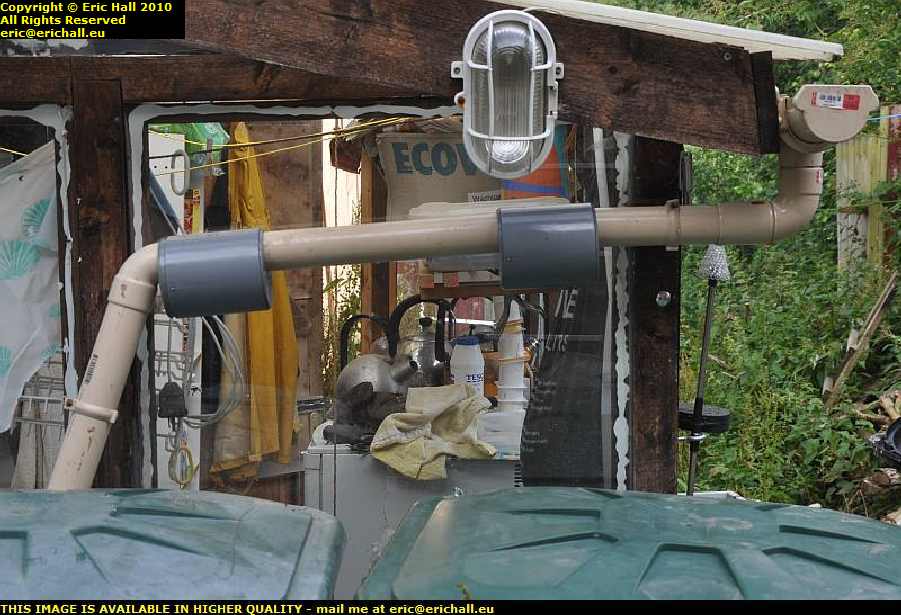 verandah lean to rainwater harvesting home made rainwater filter les guis virlet puy de dome franceYou can see what I mean in the photo just here. Filter n°1 is the one on the right-hand side. The mesh is to the left of the filter so anything that I don’t want to drop into the tank will stay in the section of 100mm pipe – the grey stuff.