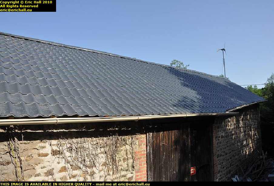 But before we did that I climbed up on the roof to seize the opportunity to take a photo of the house and the solar panels. I haven’t had a good shot of those yet. And it looks as if I’ll have to fix the guttering on the house roof before I’m much older, doesn’t it?