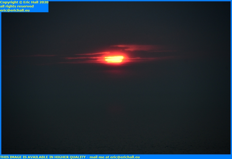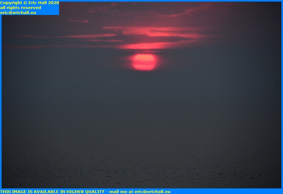 And it’s true to say that the excellent visibility that we had had this afternoon was continuing. The buildings across the Baie de Mont St Michel on the Brittany coast were all quite clear this evening with something clearly visible on the range of hills in the background slightly to the right of centre, about 20-25 miles away.