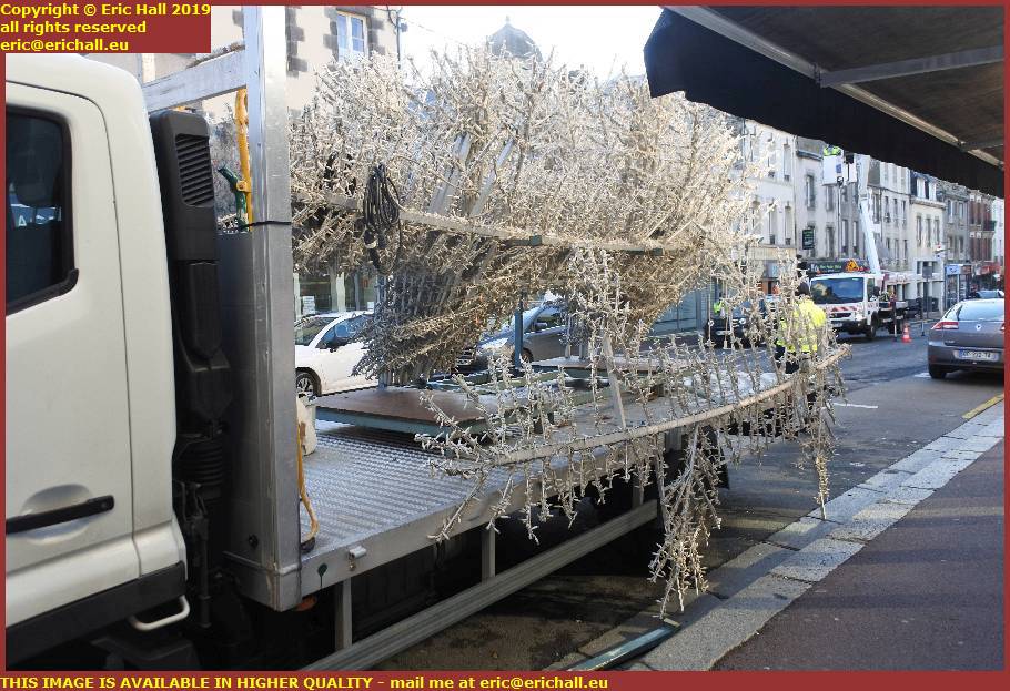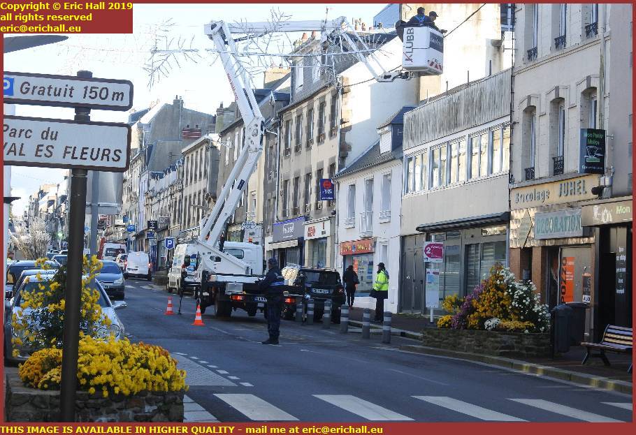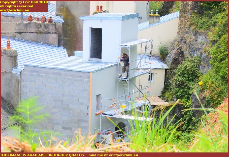 Here in the rue Couraye this morning was one of the several pressure-washers washing the confetti off the walls and the windows down into the grids where it will be eventually discharged into the sea.