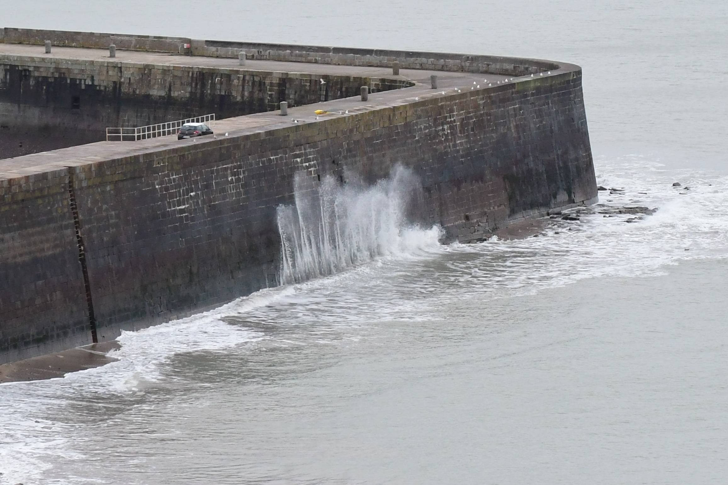 I could see that the waves were crashing over the sea wall with an incredible amount of violence. I stood there and watched it for quite a while.