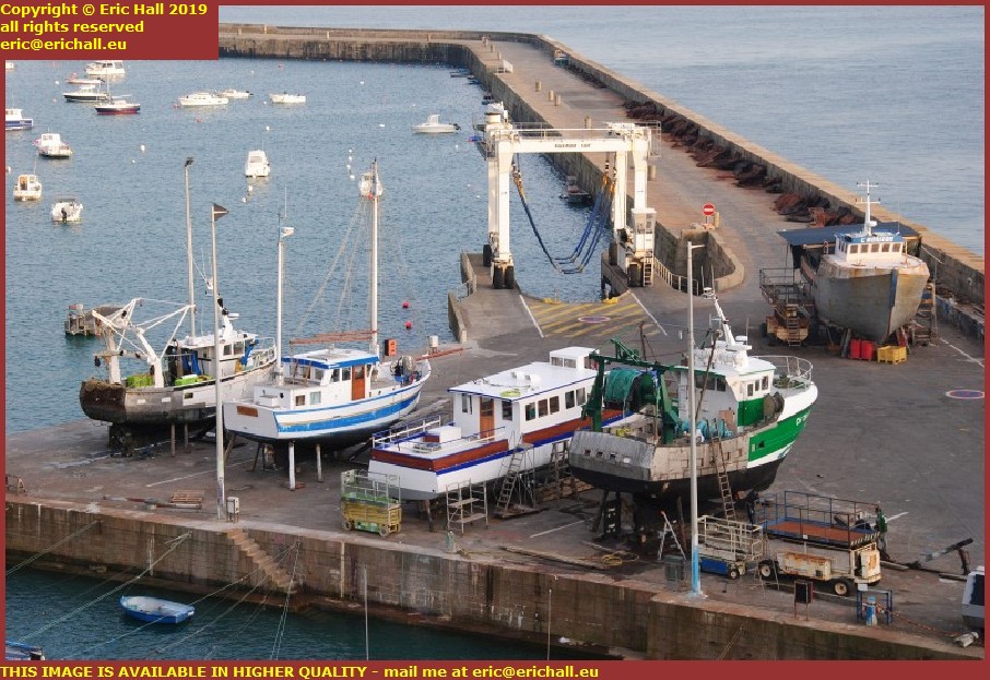 Still out two trawlers up on blocks in the Chantier navale, but more important is the fact that Joly France and Chausiais have changed position.