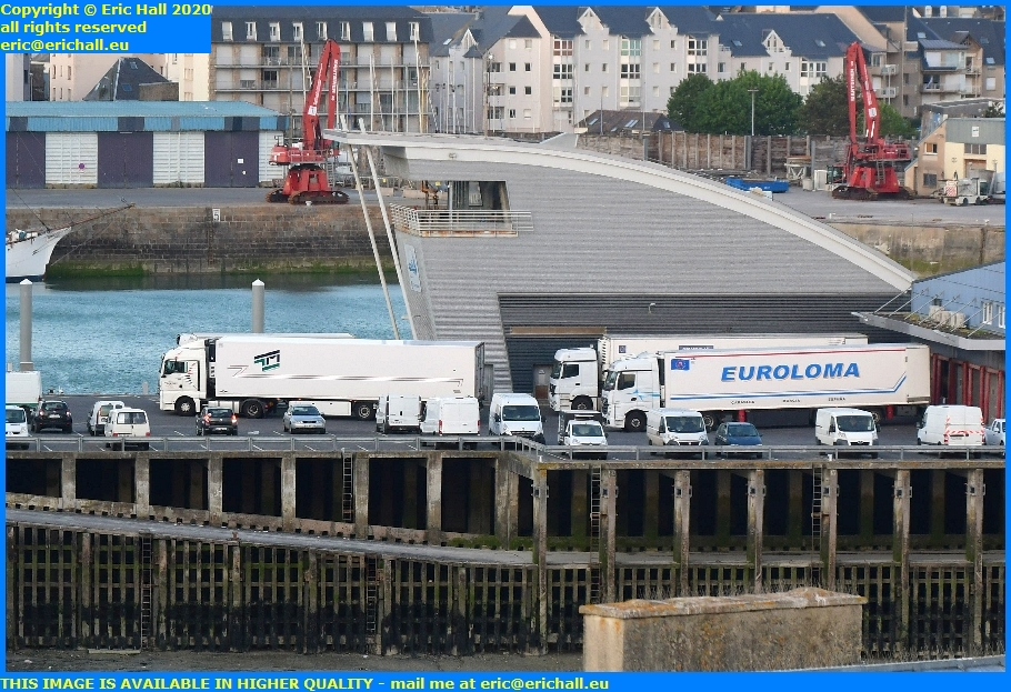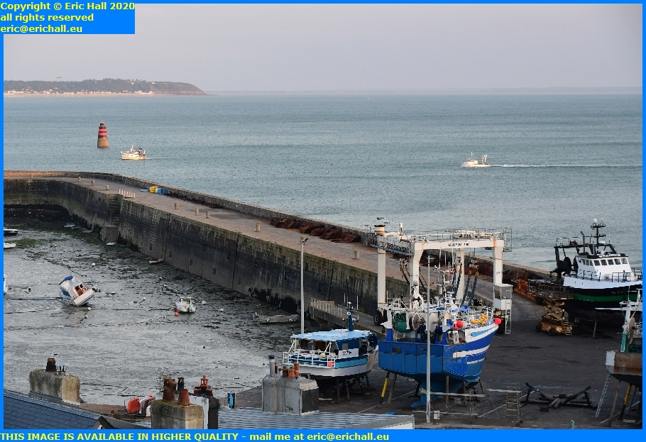 As I was observing the goings-on in the port a heavy low-loader, empty, passed by underneath me and I wondered what it had brought. But here’s the answer. We have a couple of diggers and a tractor and trailer parked on the slipway again.