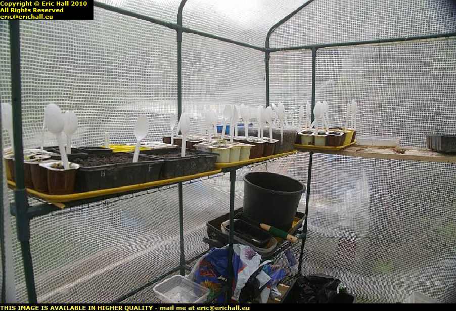 You’ll notice plastic spoons and plastic knives in the pots. I write in pencil on them the name of whatever is in the pot so I don’t forget. Real plastic tags are quite expensive whereas plastic spoons and knives cost me 50 cents for 20 at the local cheapo shop.