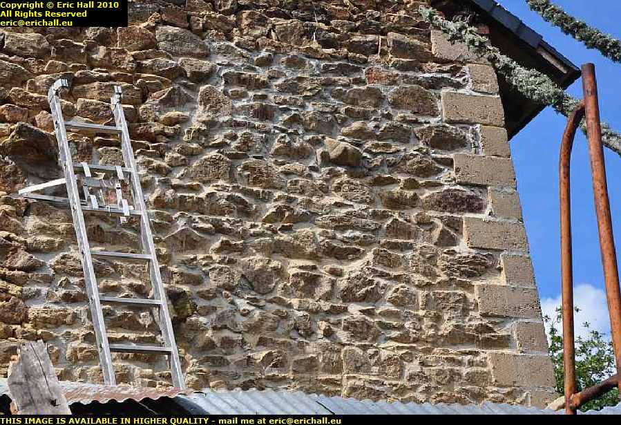 lean to rebuilding stone wall les guis virlet puy de dome franceYou can see that I’ve hung a window frame up there. It will be pretty dark, especially as I forgot to install the roof-light that I had to hand, and so I need to be able to let the light in.