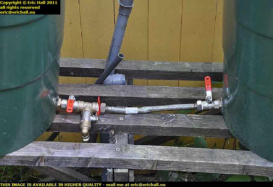 After the usual couple of hours on the computer I made a start on the water butts again and they are finished for now – until the next revision. You can see the taps at the back of each of the butts and the drainage tap in the middle in case I need to drain the back one for cleaning purposes. But I’m not at all impressed with the quality of the Brico Depot tap connector – you can see how much it has kinked with just a simple tightening. I’m going to have to change that for something decent.