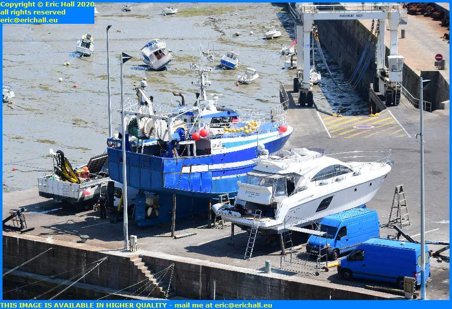 From there I could see down into the chantier navale and there’s been a change of occupant today. There’s a small fishing boat now appeared on the left-hand side of the row of boats.