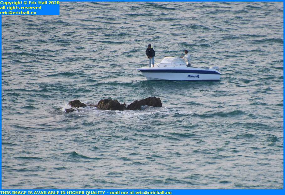 Outside here down below, the tide is now in,, and we had a speedboat with several people on board who seem to have more than just a passing interest in the rocks just there.