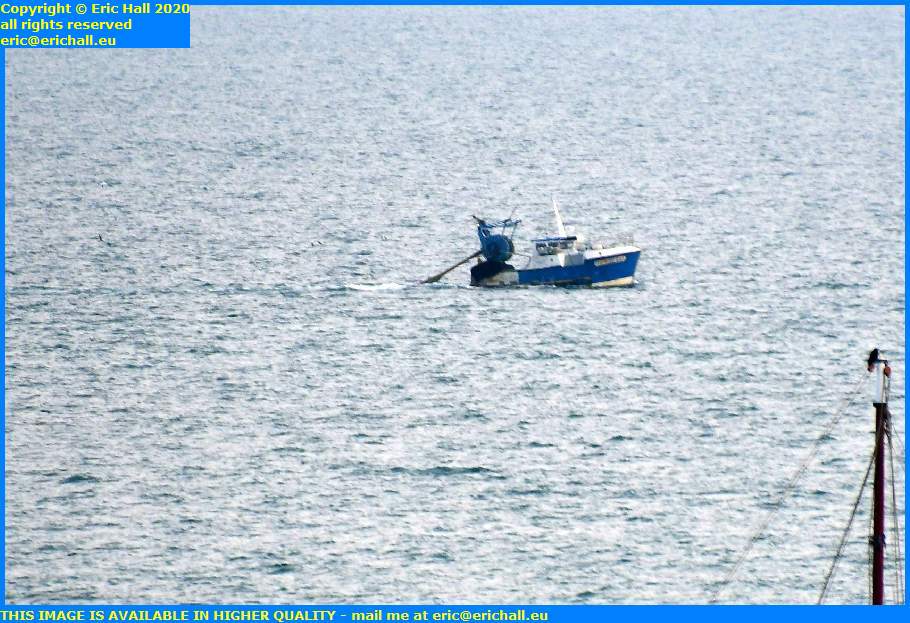This would seem to be one of the boats that has just left the harbour but if you look very closely he has his dredging plates out already, judging by the cable out at the back.