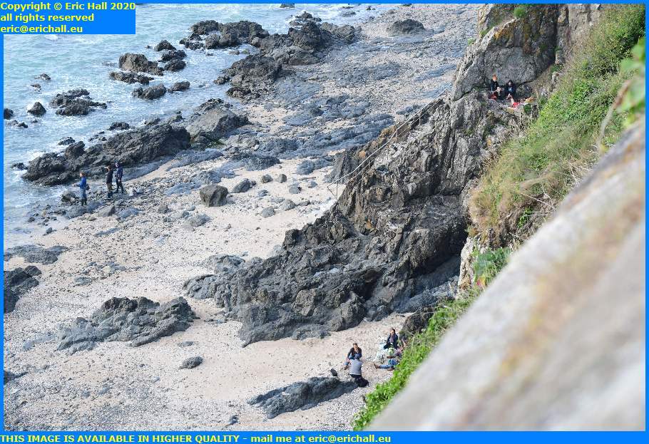 Although our photos of our birdman don’t show it, there were dozens of people loitering around the Pointe du Roc, and even down on the beach we had people walking around, studiously obeying the injunction not to “install oneself” on the beach.