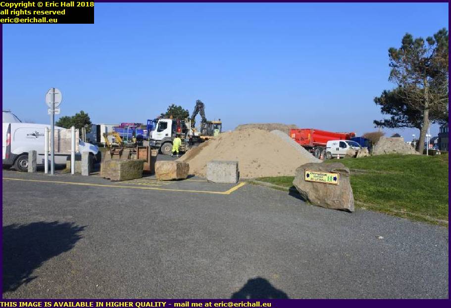 On the car park by the lighthouse was a digger digging a trench, and I fell in with a couple of workmen. It seems that, at long last, fibre-optic cable has come to Granville and they are laying the cables.