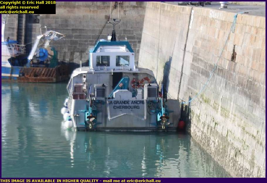 She is indeed called La Grande Ancre and is indeed out of Cherbourg. But apart from that, I’ve not been able to find anything about her at all, except that back in 2005 she assisted at a shipwreck off the Iles de Chausey, rescued the survivors and towed the damaged boat here to Granville