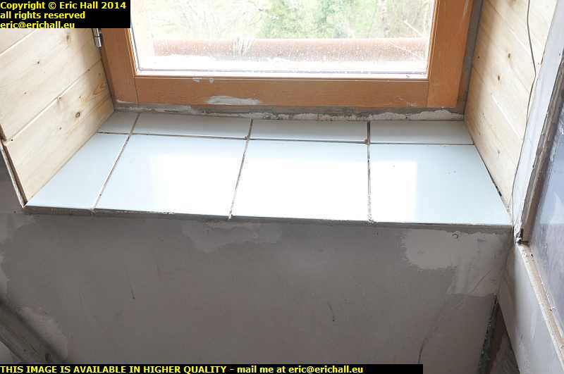 By lunchtime, they were all cut and cemented to the window sill. All they need now is to be grouted and I really do wish that I had done the window in here like this now.