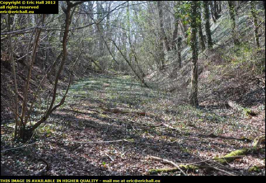 In the end, they dug a tunnel through the rock, a tunnel of 22O metres in length and which was one of the marvels of Belgian engineering. Unfortunately, the portal at this end is on private property and overgrown so it’s not accessible.