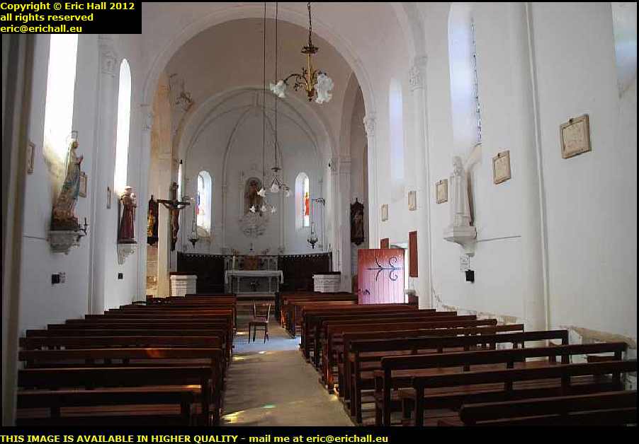 The interior is quite basic. We have the typical paintings of the “Chemin de la Croix” which date apparently from the very early 20th Century and the painter is unkown. There’s the principal altars and two side altars are also present, one dedicated to Mary and the other to Joseph.