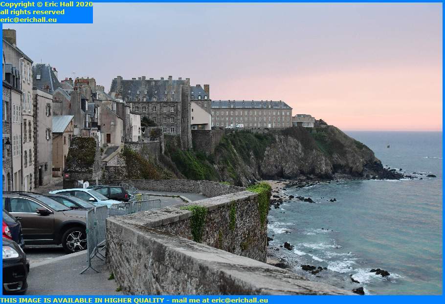 Down the steps from here to the viewpoint overlooking the Place Marechal Foch. The tide was was still an hour or two from being right in and with the sea having calmed down from how it has been over the last couple of days, there was nothing in the way of waves breaking onto the sea wall of the Plat Gousset.