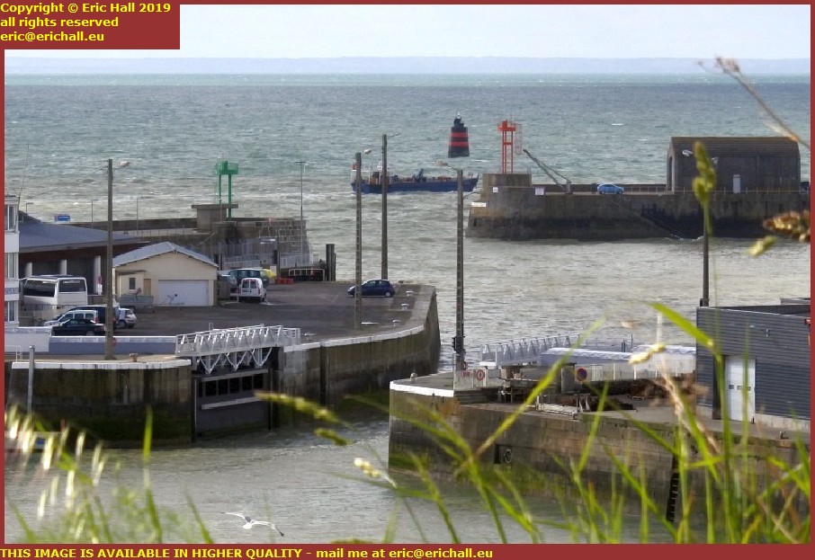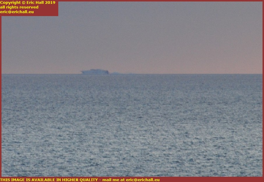Well, maybe there was, but if so, I couldn’t see it. We can see the seafarers’ memorial and then Le Loup, the light that sits on the rock at the entrance to the harbour. But the coast across there is nothing more than a misty haze.
