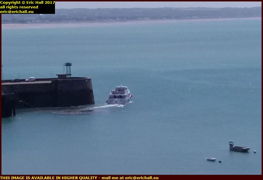 We saw the number of boats under repair dwindle down to none at the end of last week, and then yesterday we had a couple in there. But today, joining La Granvillaise and a fishing boat is another fishing boat and the yacht Charles-Marie.
