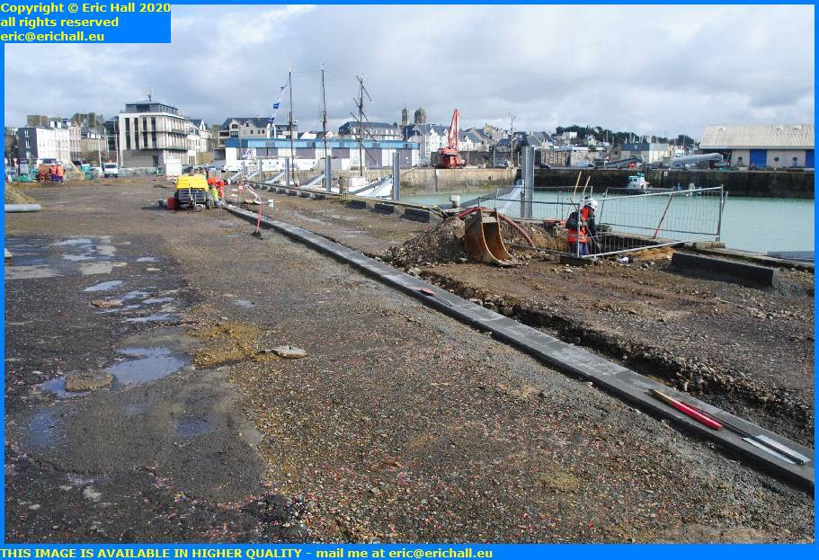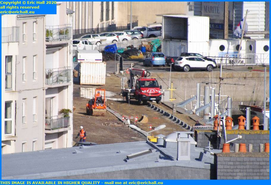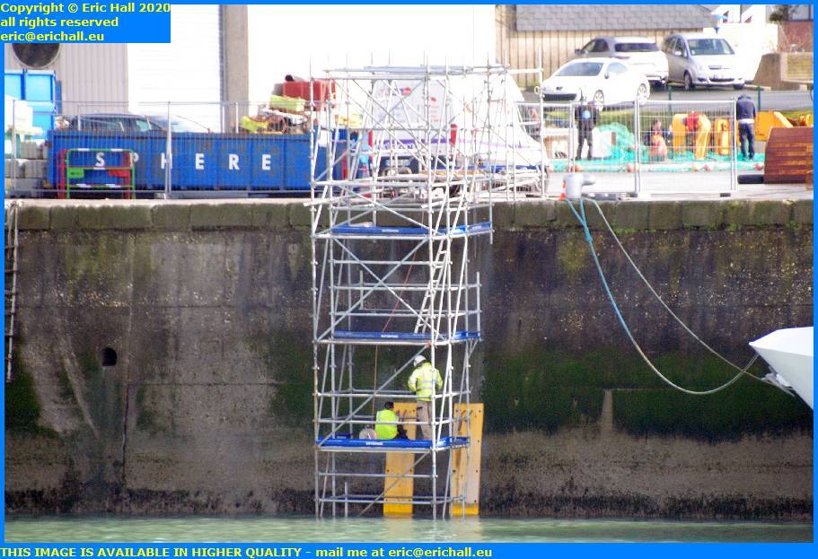 So today, we can see a couple of workmen on there having a good play around with something or other. I’ve no idea what but I suspect that they are drilling the quayside just there in order to mount another one of these pontoon supports.