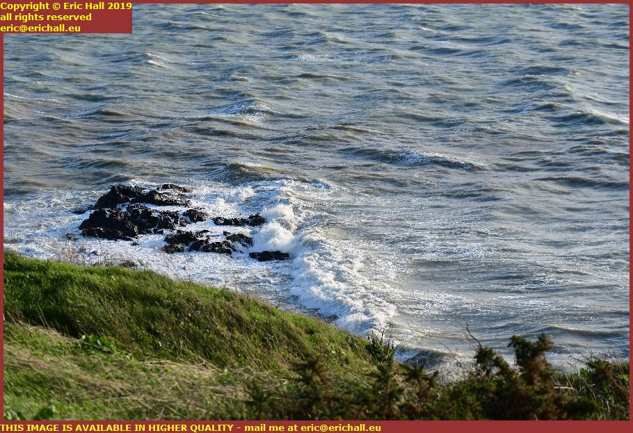 waves crashing on rocks pointe du roc granville manche normandy franceThe wind has died down now. It’s merely gale force.