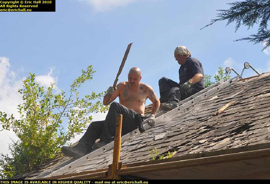 Once the scaffolding was up, we all set to work and had a really good go at stripping all of the tiles off the roof. They didn’t need much, it has to be said, and thanks to Simon who stayed around for a while, we had that job finished well before lunch.